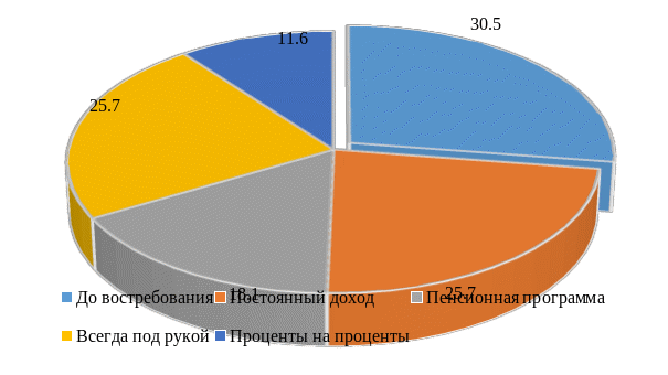 Наибольший удельный вес в структуре вкладов традиционно занимает вклад «До востребования», на его долю приходится 30,5 % всех привлеченных средств населения.