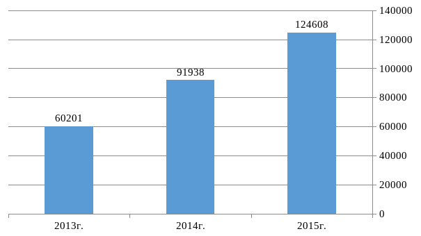 Таким прирост доходов банка по расчетно-кассовому обслуживанию в 2014 г. составил 2722 тыс. руб. или 14,4 %, в 2015 г. – 2929 тыс. руб. или 13,5 %. Наибольшие же темпы роста демонстрирует рост комиссии банка по операциям с иностранной валютой (в 2014 г. прирост составил 44,7 %, в 2015 г. – 30,4 %).