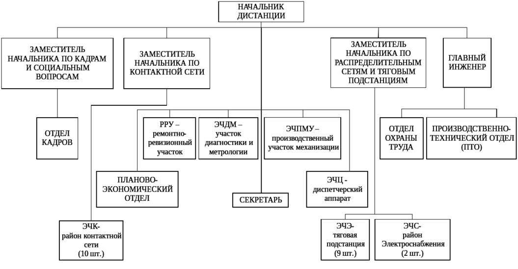 Рисунок 1.1 - Организационная структура управления Хабаровской дистанции электроснабжения.