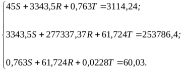 Подставляя данные таблицы 3.2 в систему (3.2), и решив ее получим коэффициенты уравнения:
