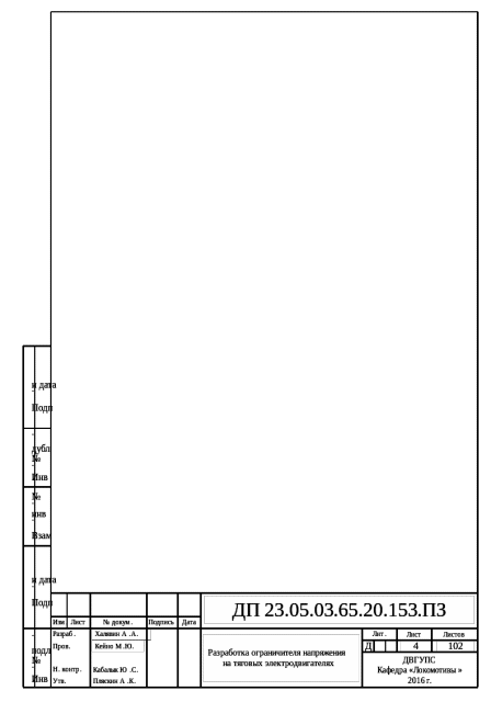 Final qualifying work: Design the voltage limiter device for traction electric motor by the student of the Far Eastern State Transport University of Khalyavin A.A.
