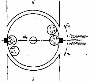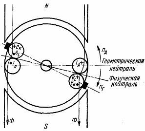Так будет скомпенсирована не только э.д.с. вращения но и э.д.с. самоиндукции (частично или полностью). Как говорилось ранее, угол сдвига физической нейтрали постоянно изменяется, поэтому щетки обычно устанавливают со сдвигом на некоторый усредненный угол по отношению к ней.