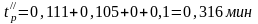 - время движения людского потока на третьем участке, мин;