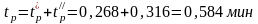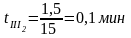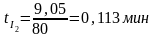 - время движения людского потока на втором участке, мин;