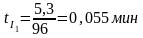 - время движения людского потока на первом участке, мин