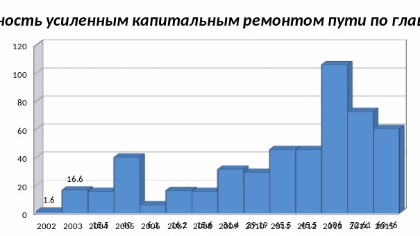 | | Усиленный капитальный ремонт пути | км | 60,457 | 72,610 | 106,0 |