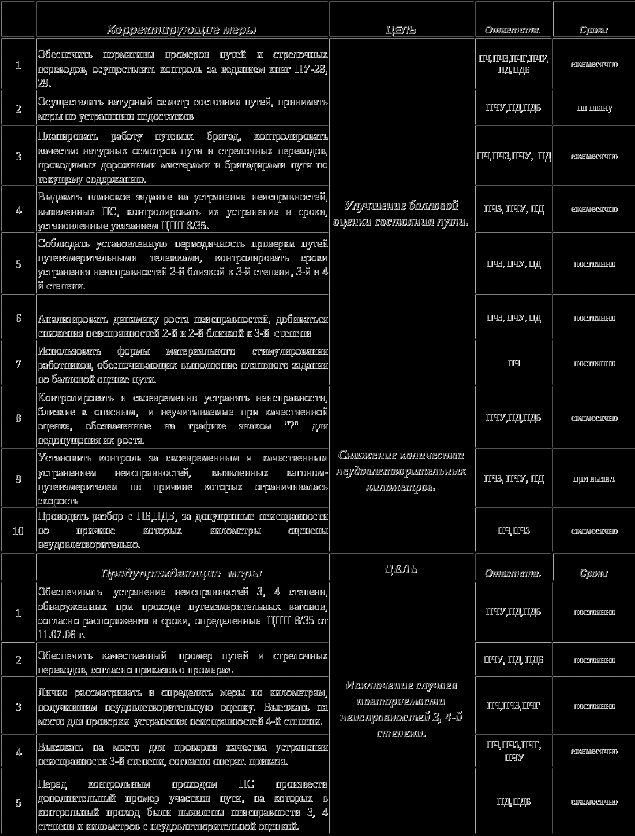 Для улучшения балловой оценки пути, снижения количества неудовлетворительных километров в дистанции пути разработан план корректирующих и предупреждающих мер: