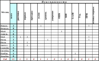 выявленных неудовлетворительных километров по неисправностям за 2014год
