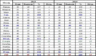 | Наименование | Изм. | План на 2014г. | Выполнение | |||||||||||