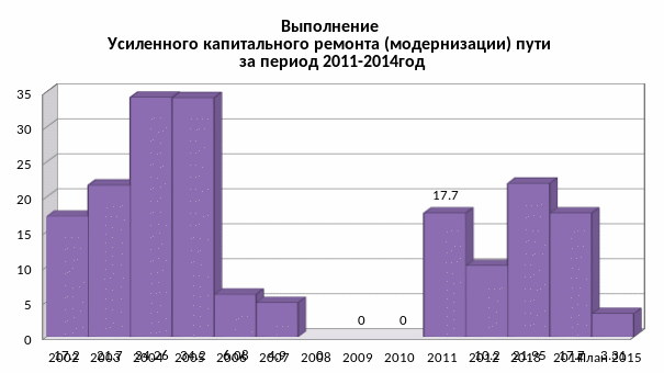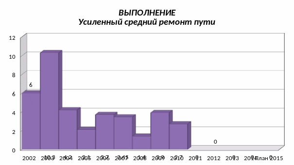 В 2014 году было по 6-й Хабаровской дистанции пути запланировано к устранению 9 негабаритных объектов. Из 9-и запланированных объектов выполнение составило – 1: