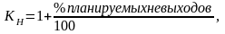 - коэффициент, учитывающий планируемые невыходы работников во время отпуска, болезни и т.п., определяется по формуле: