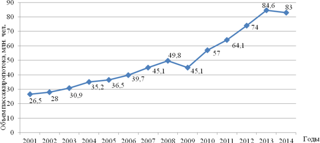 Начиная с 2001 г., российский авиатранспортный рынок устойчиво развивается, отражая подъем экономики в стране (рис. 2.2).