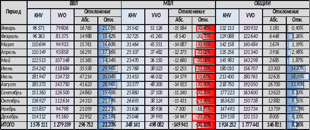 Общий пассажиропоток в ОАО «ХАБАРОВСКИЙ АЭРОПОРТ» на протяжении всего года выше, чем во ОАО «Международный аэропорт Владивосток». В январе отклонение менее процента, в феврале +5,26%, с марта по май вновь разница минимальна, в пиковые месяца года пассажиропоток ОАО «ХАБАРОВСКИЙ АЭРОПОРТ» имеет максимальный рост и отклонение от ОАО «Международный аэропорт Владивосток», с сентября процент отклонения сопоставим со среднегодовым.