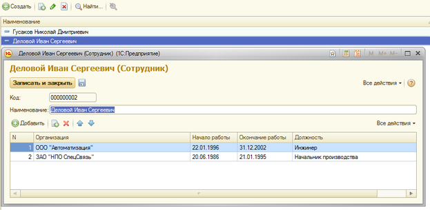 Рисунок 18 – вид справочника Сотрудники в режиме 1С:Предприятие