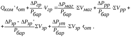 Вычисленные значения производительности компрессора и объёма главных резервуаров необходимо проверить для случаев отпуска и зарядки тормозов после полного служебного торможения (ПСТ). Проверка производится на основании уравнения баланса расхода сжатого воздуха по формуле