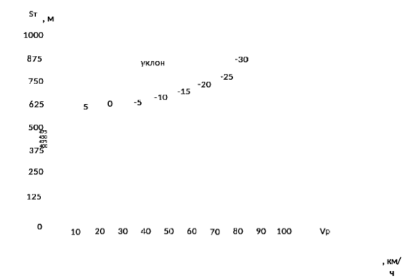 График определения тормозного пути грузового поезда представлен на рисунке 1.12.