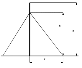 Высота зоны защиты молниеотвода (hо) ниже высоты hраз, вычисляется по формуле: