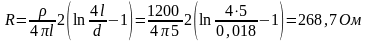 Вертикальные заземлители представлены в виде 5-метровых стержней диаметром 0,018м. Рассчитаем сопротивление вертикального электрода (глубинный заземлитель):