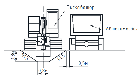 Разрабатывать грунт в траншеях "подкопом" не допускается. Извлеченный из траншеи грунт необходимо размещать на расстоянии не менее 0,5 м от бровки этой выемки.