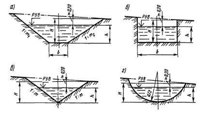 Рисунок 3.9.1. Типы сечений поверхностных водосборно-водоотводных устройств