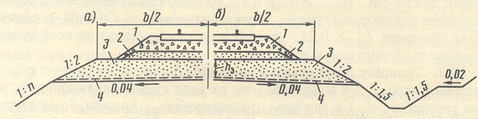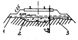 1 – нетканый материал; 2 – балласт; 3 – глинистые грунты