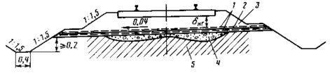 Рис. 3.7. Поперечный профиль конструкции теплоизолирующего слоя на насыпи: