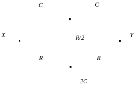Рисунок 1.5 – Схема двойного Т-образного мостового режекторного фильтра: X – входной сигнал, Y – выходной сигнал