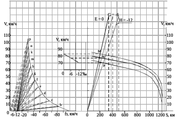 По результатам расчетов строится диаграмма ограничения скорости движения по тормозам рисунок 4.3
