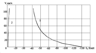Рисунок 4.2 – Диаграмма замедляющих сил: 1 – режим экстренного торможения, 2-режим выбега