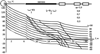 При расчёте распределения температур по длине магистрали рисунок 4.4, температуры распределились следующим образом.
