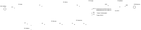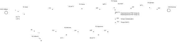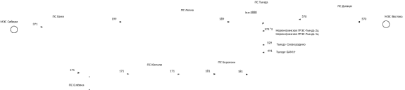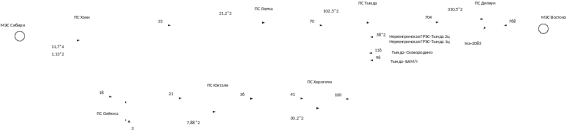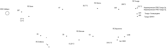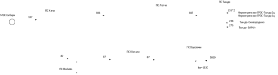 Схема распределения токов при трехфазном коротком замыкании на ПС Тында.