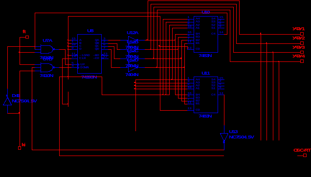 Элемент сравнения выполняется на основе микросхемы сумматора «7483N» и инвертора «7404N».