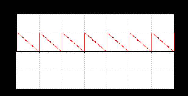 Цифро-аналоговый преобразователь необходим для демонстрации сигнала изменяющегося кода. Выход преобразователя через разъём «OSC-GIK» соединяется с осциллографом XSC2. На экране осциллографа сигнал изменяющегося кода отображается красным цветом.