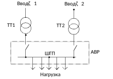 Рисунок 1.3 – Простейшая схема автоматического ввода резерва с шиной гарантированного питания (ШГП)