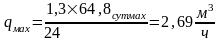=1,1…1,3 ‒ максимальный коэффициент суточной неравномерности водопотребления, учитывающий уклад жизни населения, режим работы предприятия, степень благоустройства здания [5].