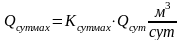 Неравномерность потребления воды в течение года, создает колебания суточного расхода. По этой причине системы водоснабжения должны быть запроектированы на пропуск максимального суточного расхода воды. Максимальный суточный объем воды: