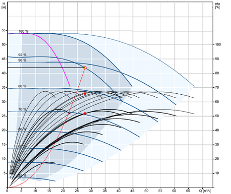 На основе данных представленных компанией разработчиком выберем необходимый насос, используя характеристику работы насоса, изображенную на рисунке 2.1
