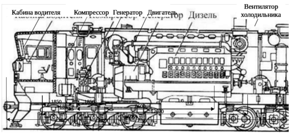 Локомотив является сложной технической системой, состоящей из подсистем и элементов, взаимосвязанных между собой для выполнения главной цели – создание управляемой силы тяги. В данном случае для получения силы тяги на гибридном приводе необходимо определить место, занимаемое дизель – генераторной установкой, вычислить сколько места потребуется для гибридной установки и определить массу тепловоза. За основу будет взят самый распространенный тепловоз на Дальнем Востоке 2ТЭ10М [9].