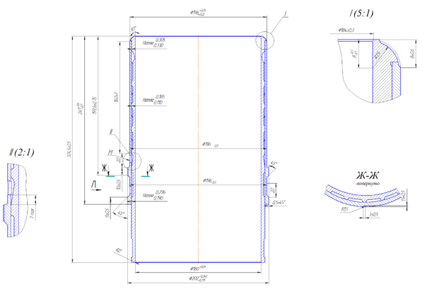 Гильза (рисунок 1.1.1 и рисунок 1.1.2) изготовлена из стали 38ХМЮА. Внутренняя, рабочая, поверхность гильзы азотируется, глубина азотации 0,35—0,6 мм НВ750.