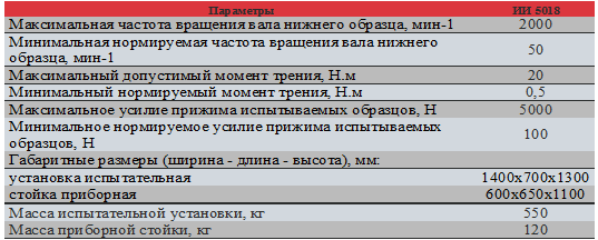 В процессе испытаний измеряется момент трения, сила прижима, температура, частота вращения, путь трения. Машина устанавливается на виброопорах, специальный фундамент не требуется [21].