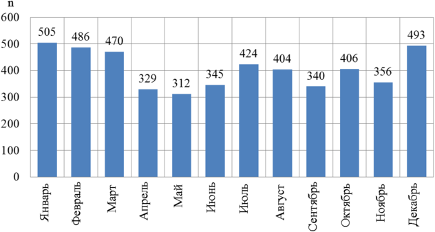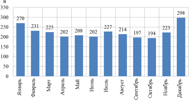 Из диаграммы, представленной на рисунке 1.3, видно, что самое большое количество неплановых ремонтов электровозов пришлось на декабрь месяц, а самое маленькое – на октябрь.