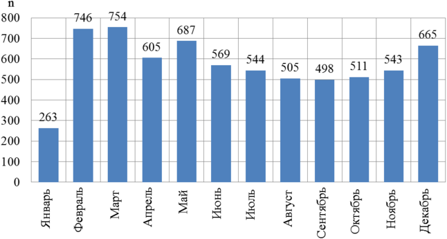 Из диаграммы, представленной на рисунке 1.7, видно, что самое большое количество неплановых ремонтов электровозов пришлось на январь месяц, а самое маленькое – на май.