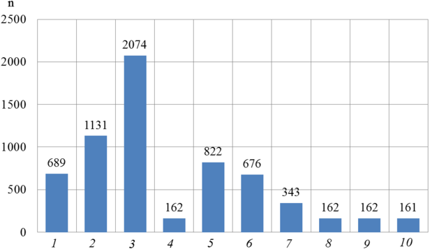 | Количество отказов (n) | 2 | 406 | 209 | 539 | 270 |