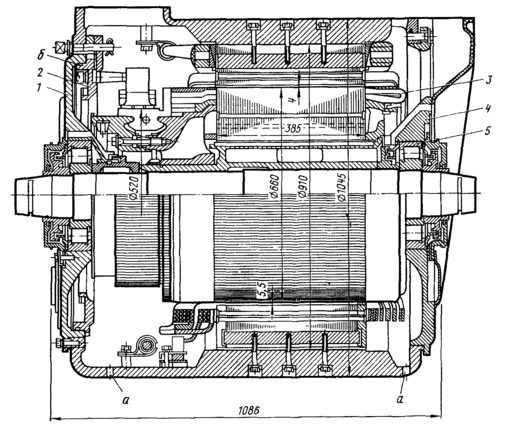 На рисунке 4.1 представлен продольный и поперечный разрезы тягового двигателя НБ-514.