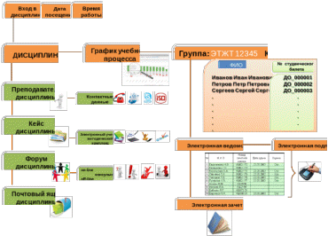 фиксация результатов выполнения и проверки электронных контрольных работ и тестовых заданий в электронных учебных карточках студентов;
