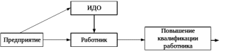 В ходе дипломного проектирования рассматривается дистанционное обучение работника локомотивного хозяйства, поэтому была составлена структурная схема процесса обучения работника (рисунок 3.2), а именно взаимодействия предприятия, работника и Института Дополнительного Образования (ИДО). Итогом обучение должно стать повышение квалификации, подтверждение квалификации и/или продвижение по службе.