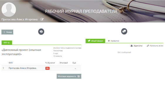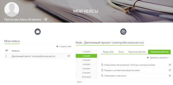 На рисунке 4.7 представим рабочий интерфейс для студента