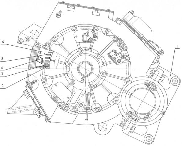 Для предохранения моторно-осевых подшипников качения от попадания в них пыли и влаги ось с подшипниками закрыта в соответствии с рисунком 2.1 крышкой 1, с помощью которой тяговый двигатель крепится к оси колесной пары. Крышка 1 запрессована в остов и закреплена восемью болтами М36x2, десятью болтами М24х2 и четырьмя штифтами.