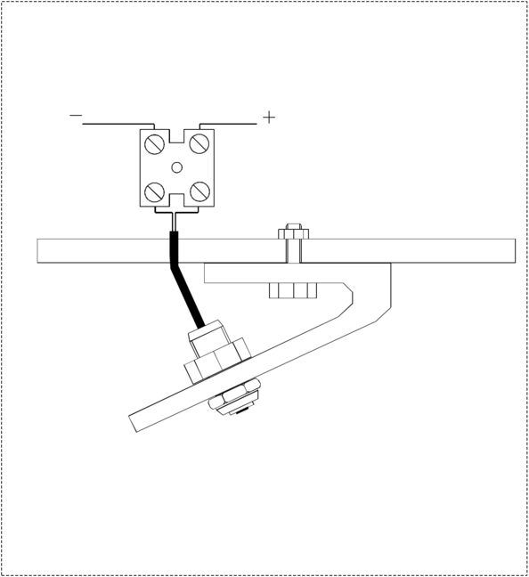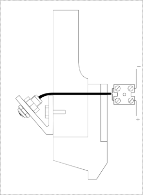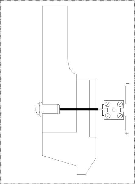 Крепление одного датчика, направленного на крайние участки петушков коллектора, в местах соединения с обмоткой якоря, будет производится на крышке коллекторного люка болтовыми соединениями на специальным металлическом уголке, который будет обеспечивать направление датчика под углом, а для выводов проводов витой пары будет проделано дополнительное технологическое отверстие, как показано на рисунке 4.5 и рисунке 4.6. Для соединения общих проводов витой пары с выводами пирометра будет иметься клеммная колодка, что позволит при демонтаже пирометра не разрывать соединение.