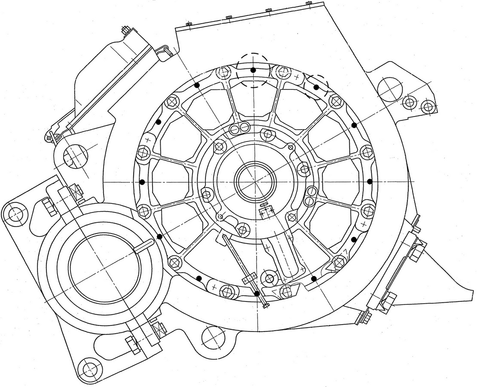 Датчик направленный на обмотку дополнительных полюсов будет крепиться болтовыми соединениями на специальном металлическом уголке, под наклоном, так как обмотка дополнительного полюса располагается на другом уровне от обмотки главного полюса. Технологической отверстие для вывода витой пары будет проходить через подшипниковый щит, в месте где нет болтового отверстия крепления, как показано на рисунке 4.8.